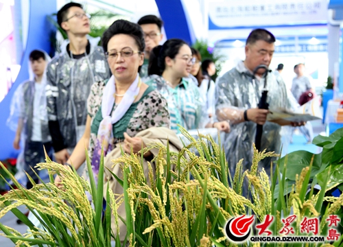 山东·青岛馆展示了山东及青岛推进新旧动能转换、实施海洋科技自主创新的新成果,以及青岛西海岸新区实施海洋战略、率先蓝色跨越的新亮点。哈尔滨工程大学青岛船舶科技园、青岛海西重机、华大基因、三泰集团等驻青高校、企业集中亮相,展出的海工装备、船舶制造、海洋生物、海洋医药、基因工程、海水淡化等蓝色科技创新发展技术,凸显了蓝色经济发展的无限潜力。在青岛海水稻研究发展中心展区,负责人杜德乐正在介绍“海水稻”:“我们此次参展的水稻种质共有30份,包括优质品系、有色品系、耐盐碱品系和多倍体品系四大类。其中耐盐碱品系主要是针对盐碱滩涂培育的耐性品种,俗称‘海水稻’。相比普通水稻,可在盐碱化的土壤环境中生长,这是袁隆平院士牵头参与的课题。”