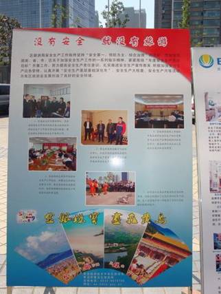 一是参加全区安全生产大型图片展。结合近年来旅游系统安全生产的主要做法,区旅游局设计了形象生动、内容丰富的宣传展牌,普及安全生产法律法规知识和安全常识,提高旅游行业从业人员的安全意识和安全素质。