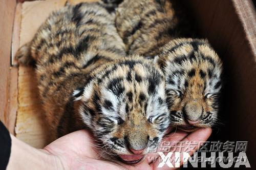 4月26日,山东青岛野生动物世界的一只东北虎“妈妈”产下一对双胞胎东北虎,在母亲节前夕喜添新丁。