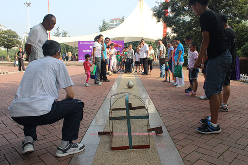 光大银行城阳支行在社区举办的趣味运动会项目“十米射门”