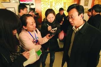 政协委员王夕源接受媒体的采访。