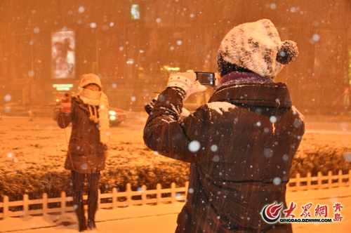 8日晚持续降雪给市民带来了惊喜 (孙雯丽 摄)