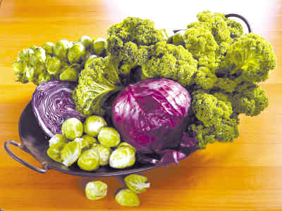球芽甘蓝(一种乒乓球大小的甘蓝):1斤的球芽甘蓝,要比1斤柑橘富含的维生素C多50%。维生素C不仅是一种强抗氧化剂,还能帮助人体抵御寒冷。4—6个球芽甘蓝,就足以满足成人全天所需的维生素C。球芽甘蓝烹调需要较长时间,炖肉、煲汤时可以放些。
