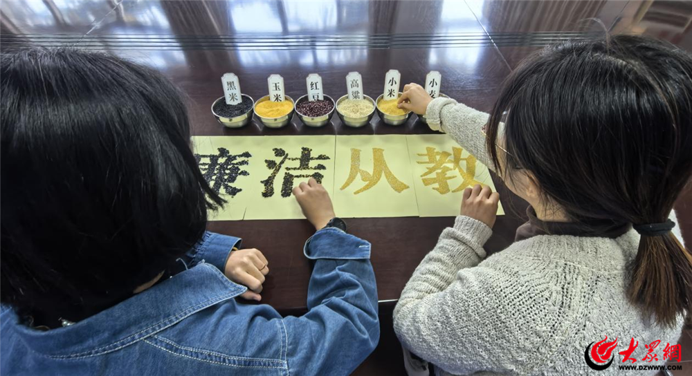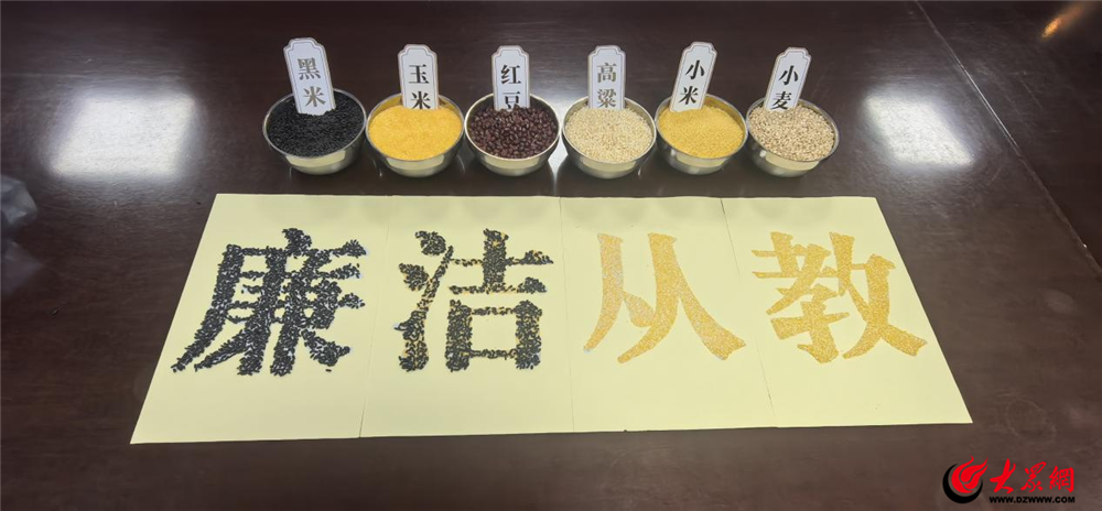 为让廉洁理念更具感染力,老师们发挥创意,精心制作廉洁从教宣传板。大家收集了五谷杂粮作为创作材料,用黑米勾勒轮廓,用玉米点缀细节,用绿豆填充底色,将“廉洁勤俭”“为人师表”等理念融入一幅幅生动的贴画中。这些由五谷杂粮制成的作品,不仅充满了自然气息,更寓意着“粒粒皆辛苦”的勤俭美德与“朴实无华”的廉洁品格。