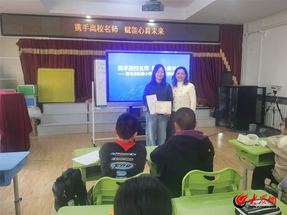 活动伊始,青岛淮阳路小学潘校长为青岛理工大学大学生心理健康教育中心副教授苏霞颁发了“心理副校长”新年度的聘任证书。这一纸聘书,不仅是一份荣誉,更是一份沉甸甸的责任与承诺。它正式将高校顶尖的心理健康教育资源引入我校,为孩子们的健康成长保驾护航,构筑起一座坚实的“心”桥梁。