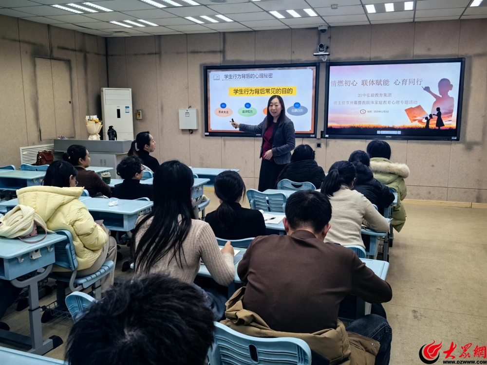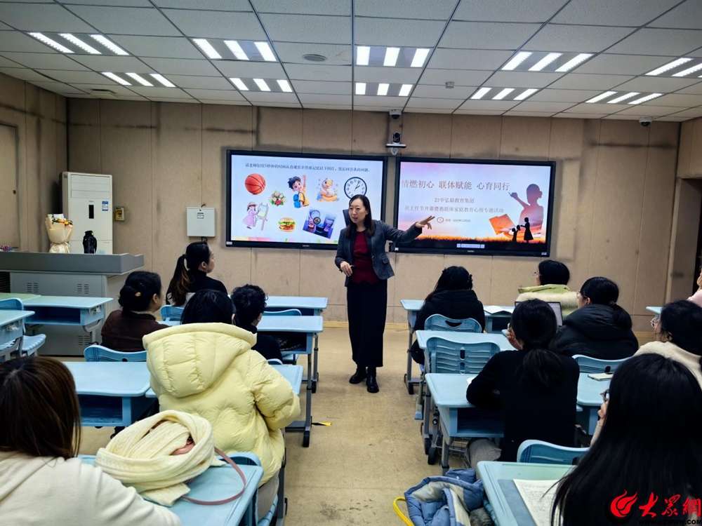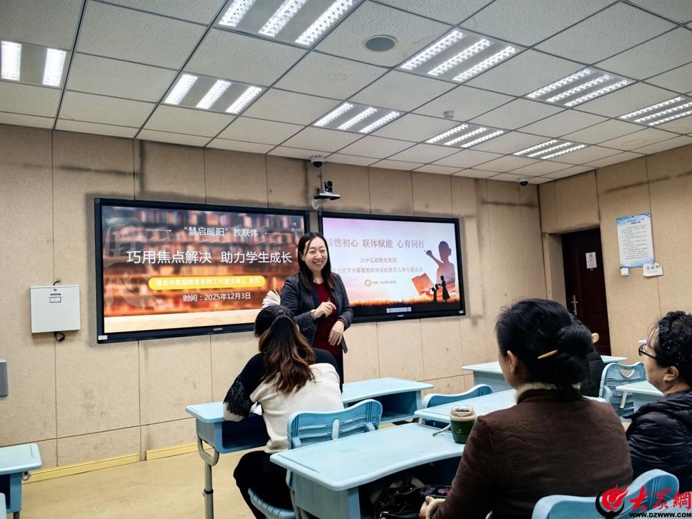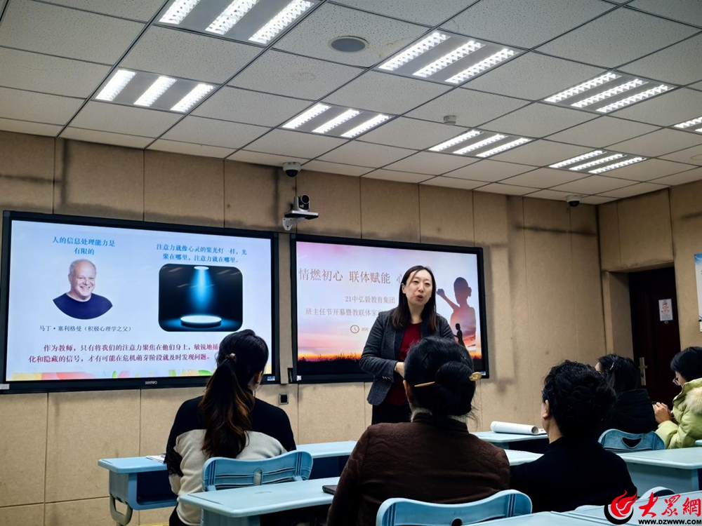 12月3日下午,由青岛淮阳路小学与青岛中央商务区实验学校共建的“慧启暖阳”教联体品牌,联合21中弘毅教育集团打造的班主任节系列活动正式启幕,首场家庭教育与心理专题培训在二十一中顺利举行。作为“慧启暖阳”教联体品牌核心单位,青岛淮阳路小学袁凤主任带来的“巧用焦点解决 助力学生成长”主题讲座,与教联体及集团内班主任、青年教师齐聚一堂,共话成长。