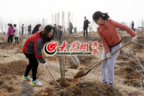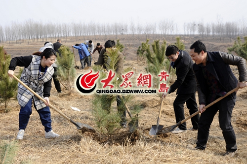 胶州千人义务植树上万棵 600亩荒山披绿装
