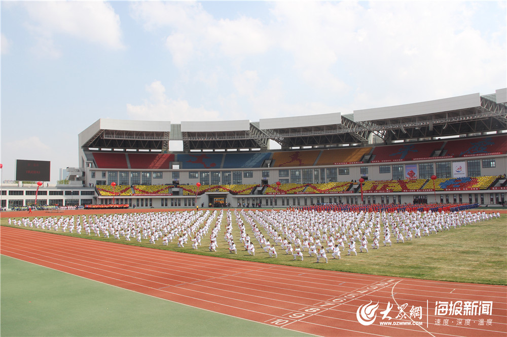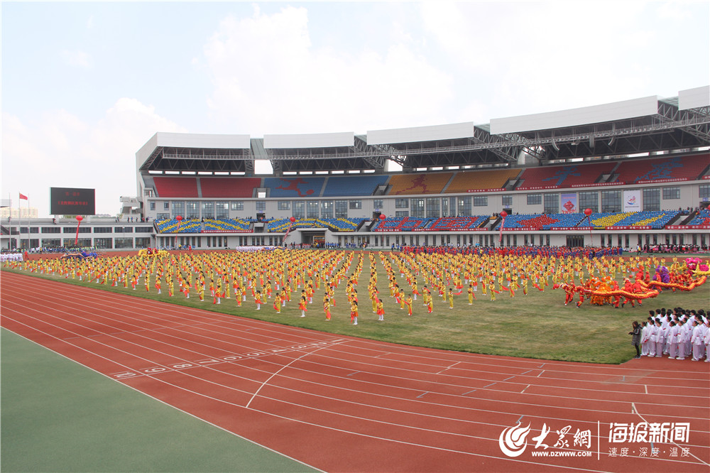 大众网青岛·海报新闻4月26日讯(记者 尚超 通讯员 王晓娟)4月26日上午,2019年青岛市中学生田径运动会暨体育节启动仪式在平度市奥体中心举行。来自平度市各学校、幼儿园的12000多名学生,以《龙腾狮跃舞华章》《精武国风》《飞翔的阳光》《炫舞青春》《花样年华》《展望未来》六个篇章,为大会奉上精彩纷呈的“十个一”项目展示,展现平度学子的精神风貌。青岛十一区市的运动员、教练员及观众共计上万余人参加开幕式。