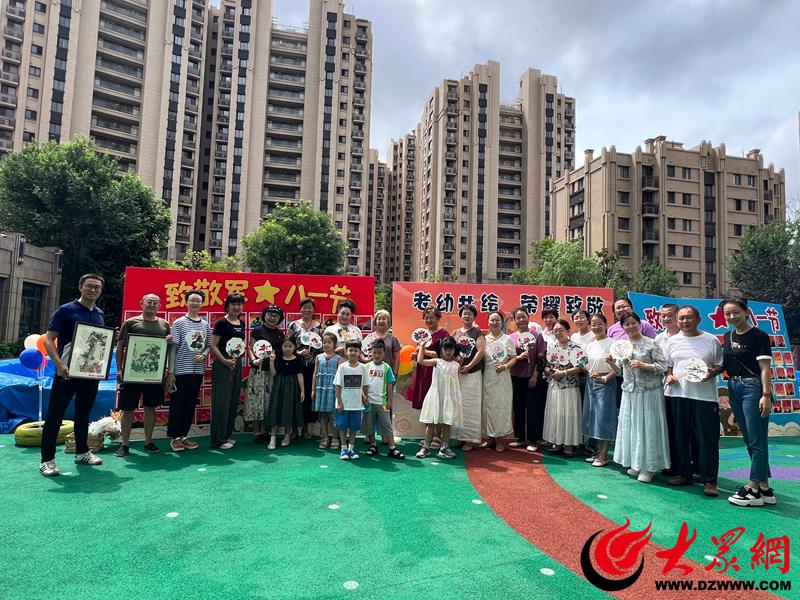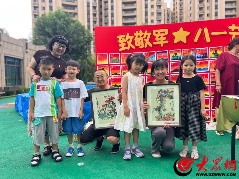 为庆祝八一建军节,市北区敦化路街道联合延吉路幼儿园举办以“老幼共绘,荣耀致敬”为主题的画展。