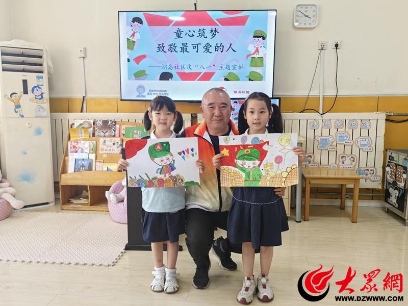 最后,小朋友为王成源送上了自己亲手画的水彩画,表达了对军人的敬爱与感谢。画纸上,有鲜艳的五星红旗迎风飘扬,穿着军装的战士挺拔站立。王成源接过画作时,眼眶微微湿润,他轻轻抚摸着孩子们的头,鼓励他们要好好学习。