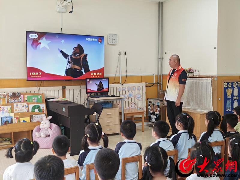 随后,湖岛社区特别邀请了辖区党员、退伍老兵王成源来到瑞安幼儿园开展“我在文明实践站过暑假:童心筑梦,致敬最可爱的人”主题宣讲。小朋友们满怀期待,用热烈的掌声迎接老兵的到来。王成源微笑着走进教室,亲切地和孩子们打招呼。他生动地向小朋友们分享自己在海军部队时的经历,讲述艰苦训练中的坚持,执行任务时的惊险与果断。孩子们听得全神贯注,眼睛里闪烁着好奇与崇敬的光芒。讲到有趣之处,孩子们发出阵阵笑声;提及艰难时刻,孩子们又不禁紧张起来。