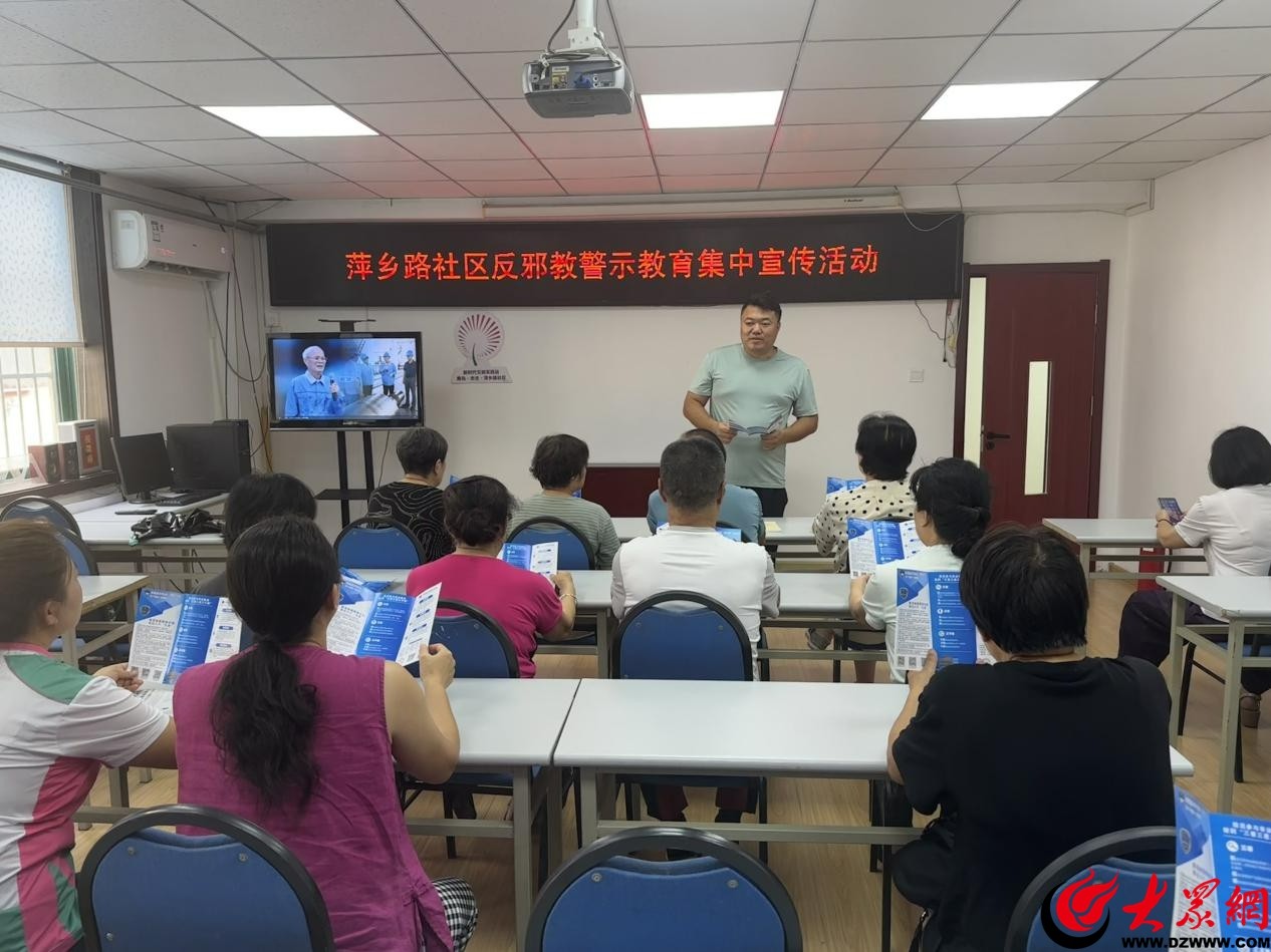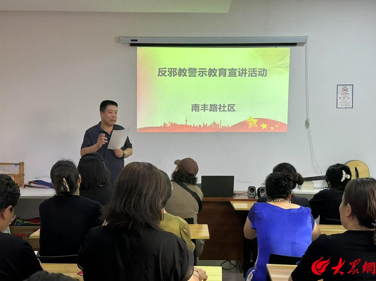 为进一步提升辖区居民辨识邪教危害的能力,近日,水清沟街道南丰路社区和萍乡路社区分别开展了"识破邪教伪装·守护幸福家园"主题宣传讲座,吸引了50余名居民到场参与。活动通过案例剖析、法律解读等形式,为居民们上了一堂生动的反邪教警示教育课。