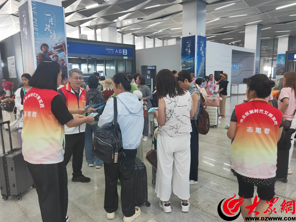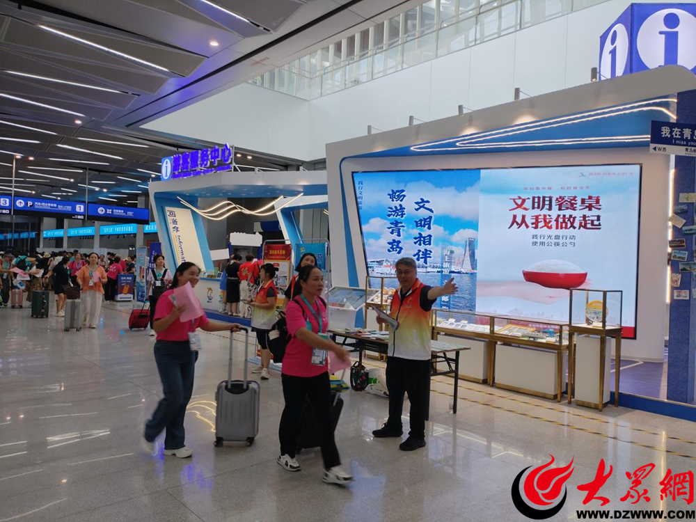 市北区文明办会同青岛国际邮轮有限公司在青岛国际邮轮母港一楼大厅的游客服务中心设置“文明旅游驿站”,打造“邮轮文明课堂”宣传空间,中心区域高清LED大屏全天候轮播《中国公民出国(境)旅游文明行为指南》《中国公民国内旅游文明行为公约》《文明旅游 每个人都是一道亮丽的风景线》《文明旅游 从我做起》《文明餐桌 从我做起 践行光盘行动 使用公筷公勺》等系列文明宣传内容,涵盖出入境礼仪、餐桌文明、移风易俗等多个主题场景。邮轮文明志愿者进驻大厅开展咨询引导、文明规范宣传等服务,向游客发放《“文明旅游 你我同行” 青岛市文明旅游宣传册》《文明旅游倡议书》等文明宣传材料,倡导游客文明出境,安全出行。