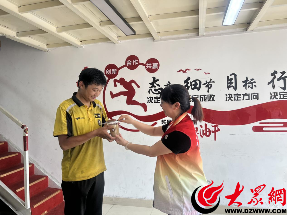 上午十点,外卖驿站成了最热闹的地方。每当有外卖小哥停下车取餐、换岗歇脚,志愿者们就立刻迎上去,递上一杯冰镇的绿豆汤,轻声叮嘱:“慢点喝,刚从冰柜拿出来,别刺激着肠胃。”接过杯子的小哥大多来不及擦去脸上的汗珠,仰头就是一大口,绿豆的沙糯混着冰糖的清甜顺着喉咙滑下,瞬间驱散了积攒一上午的燥热。“这汤比冰可乐还解渴!”一位小哥脸上露出淳朴的笑容,“社区太懂我们跑户外的辛苦了,喝下去心里都甜滋滋的。”