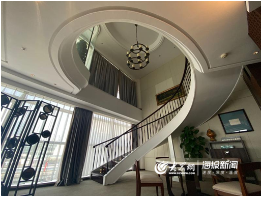 随后记者跟随负责人一起来到328,这是一间复式客房,而它最大的特色在于拥有270°的海景观赏视角。从这里望出去,奥帆中心、五四广场和沿海灯光尽收眼底。