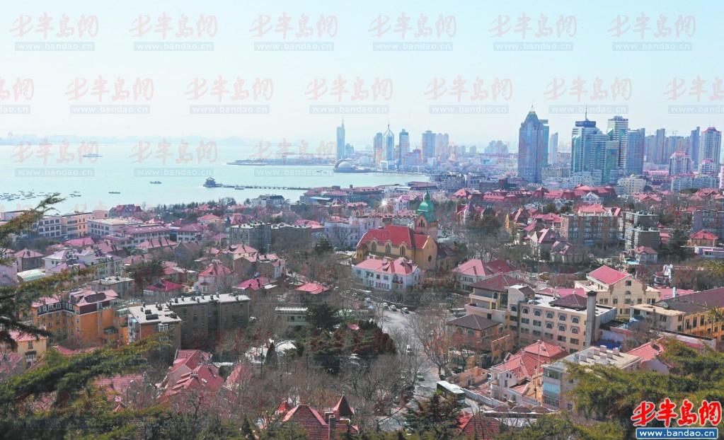 10日中午,岛城空气能见度较好,从信号山遥看前海一线,岛城美景跃然眼前。