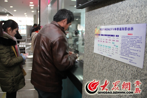 青岛长途汽车站的各售票窗口都张贴了春运购票日历,提醒旅客客流高峰到来的时间。