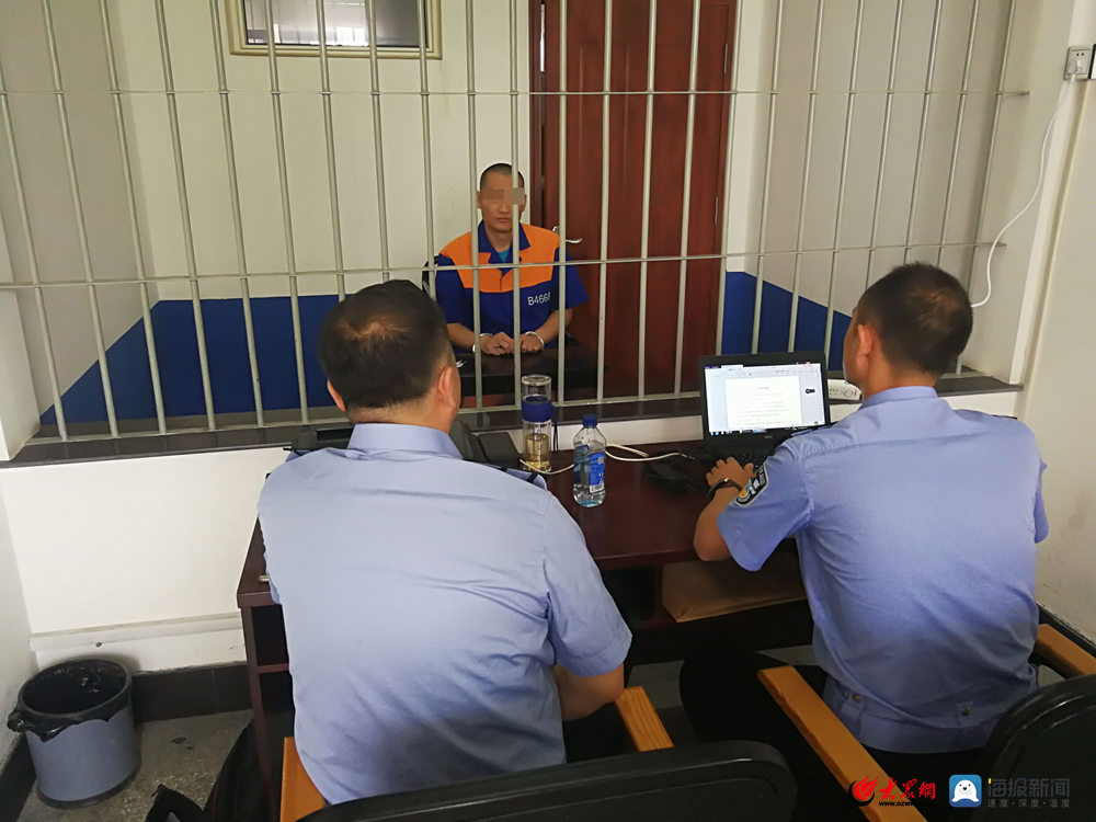 刘皓与同事对骗保案犯罪嫌疑人进行审讯