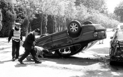 昨天上午8点半,望京利泽东二路与翠屏东路交叉口附近,一名女司机驾车连撞8辆车后翻车,轿车四轮朝天,未造成人员伤亡。司机张女士称,事发时“脑子一片空白,可能把油门当刹车踩了”。