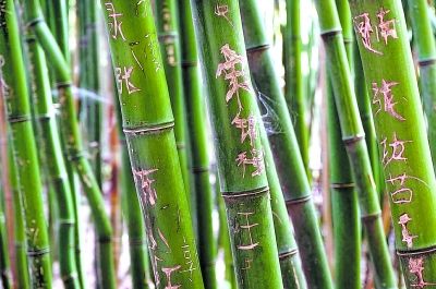 陕西省留坝县重点文物保护单位张良庙游人众多,庙内的数千棵拐拐竹几乎全被游人雕刻上各种文字。 新华社发