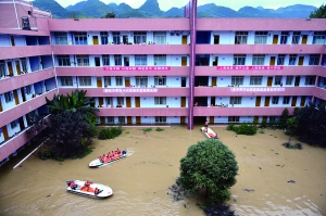 古路中学团支部书记刘琴告诉记者,1日6时30分左右下起了暴雨,她在古路中学工作了12年从未见过这么大的雨。“刚上完两节课,水就从外面灌进了学校,没多久就涨到了2米多高,于是学校立即组织在1楼的学生向2楼转移,并及时与县教育主管部门取得联系,寻求救援。”刘琴说。
