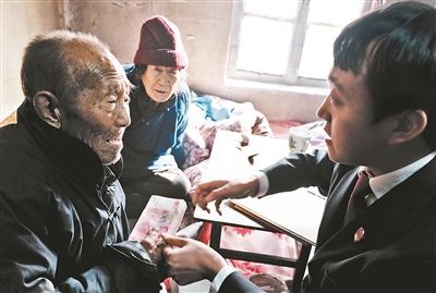 “感谢呀!”接过法官送来的赡养款,何宝才老人的双手有些颤抖。86岁的老爷子何宝才和90岁的老太太何张氏膝下共有六个子女,可因为赡养问题,老两口一下将六个子女均告上法庭,要求支付赡养费,法院2013年判决支持了老两口的要求。随后,老两口又申请执行二儿子和三儿子的赡养费支付。昨天下午,朝阳法院工作人员将赡养费9900元送到了老两口手中。